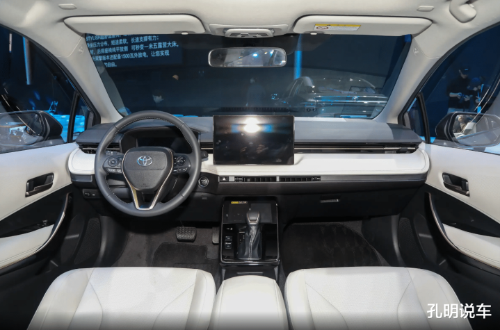 车内可以说是进行了精装修,现在难以想象卡罗拉这款车型也有大范围的皮质软包,而且搭配了12.9英寸的悬浮车机大屏幕以及全液晶仪表盘。当然细节上还是采用了传统的换挡杆,这样中控区域储物空间确实不太多,没有去跟风选择流行的怀挡设计。